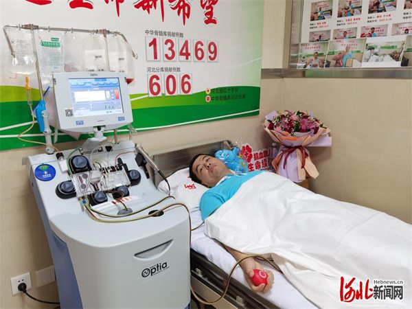 张志聪正在捐献造血干细胞。 河北省红十字会三献工作事务中心供图